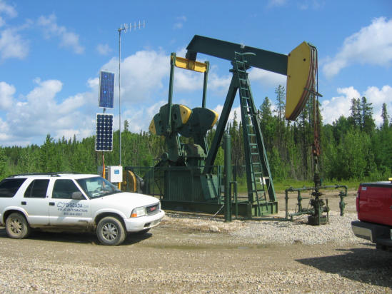 Solar-powered DrSCADA wellhead manager on a gas jack