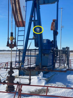 Solar-powered DrSCADA wellhead manager on a gas jack